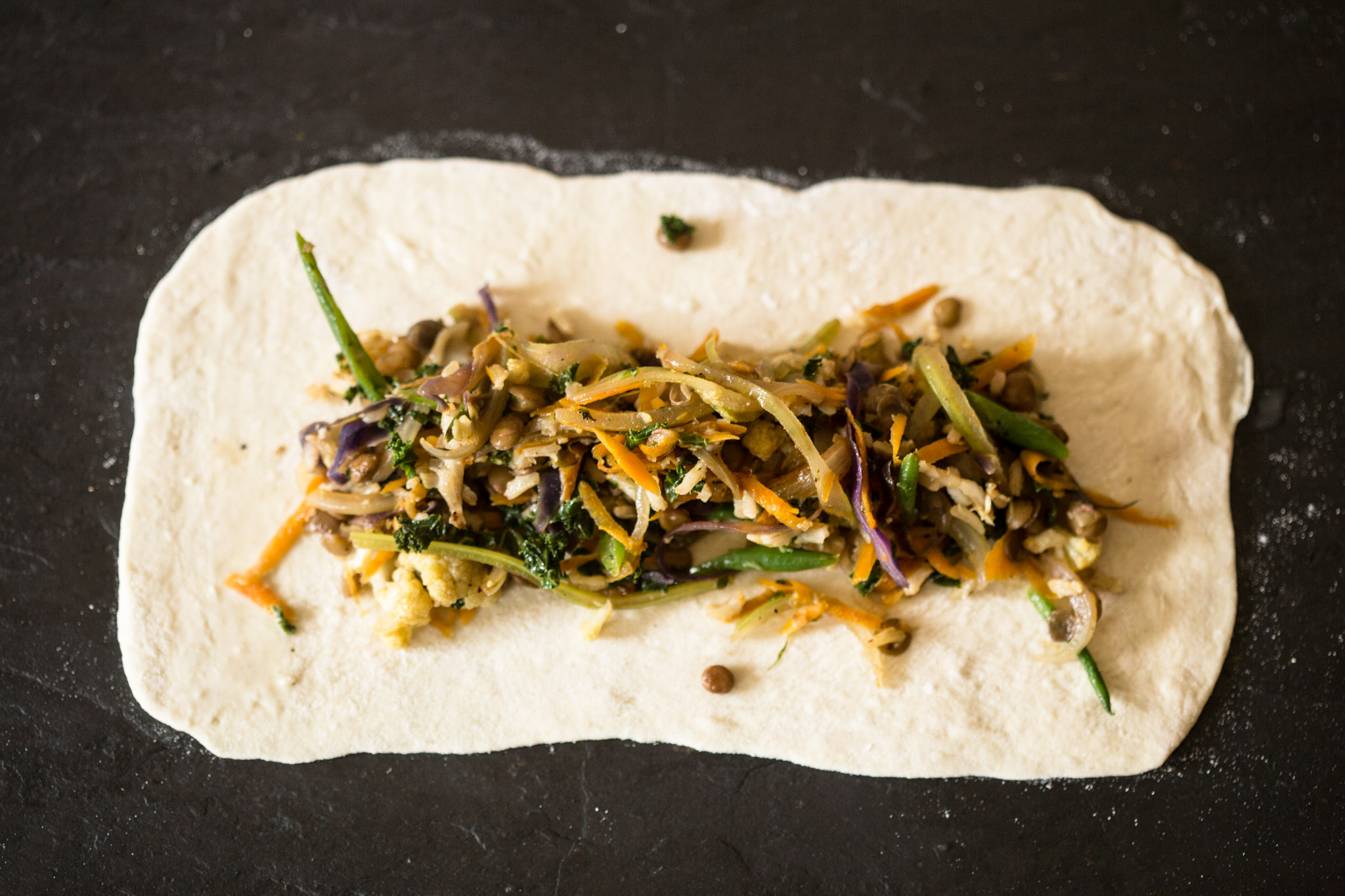 - For the filling: Grate the Carrots and finely julienne the rest of the Vegetables.